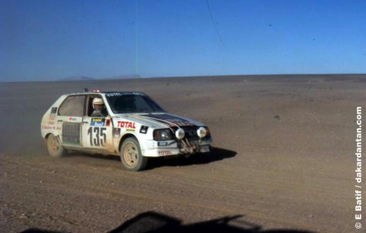 Le début du rallye se passe plutôt bien… La Visa est légère, affiche un rapport poids/puissance intéressant (même si le réservoir supplémentaire plein fausse un peu la donne). Les principaux adversaires sont bien sûr les buggys en masse sur ce 4ème Dakar (avec Cotel, Sunhill, mais aussi pour la première fois Arnoux…) mais on trouve également les Japonais du Team ACP sur une Carina, Reverchon sur une 504 spéciale, Potherat sur une 505, Vannevel sur une GS….Bref, ils sont presque 20 à viser cette catégorie !