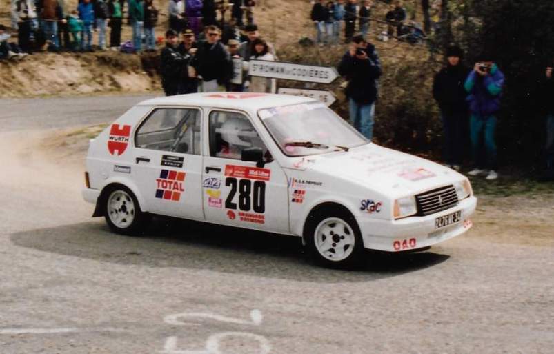 En 1992 et 1993 André revient chez Citroën en achetant une Visa trophée ex-Dorche équipée d’un gros moteur 1560 cm3. Une caisse tout polyester qui allie légèreté et tenue de route et en fait une arme assez redoutable pour aller chatouiller un gamin de son village qui court sur une Talbot Samba Rallye.